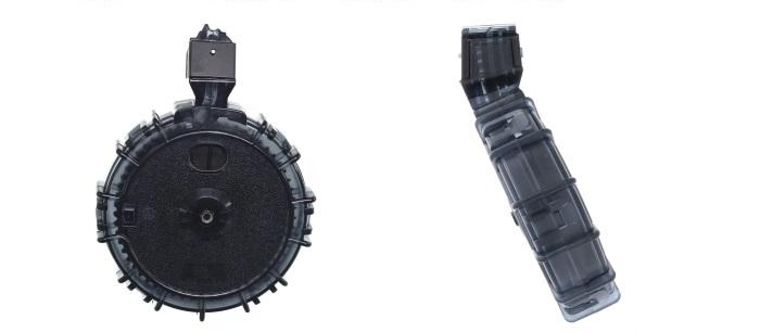 This 55-rd drum is for the Ruger 10/22, and Charger firearms chambered in .22LR. The magazine body is constructed of a proprietary DuPont Zytel based polymer to ensure a long service life. All components proudly made in the U.S.A.