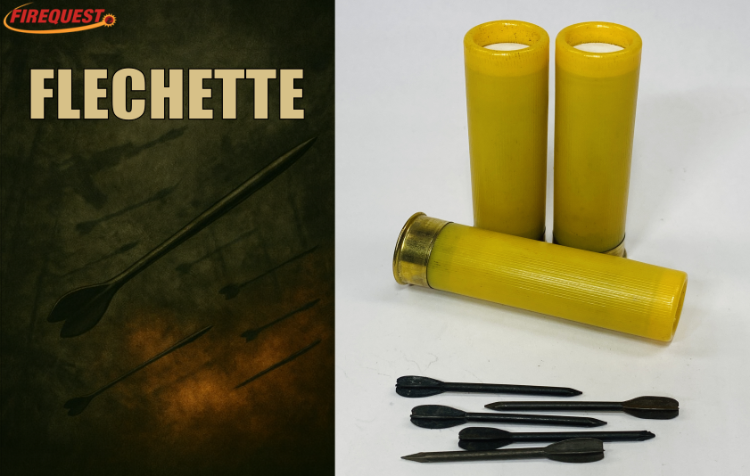A Flechette is a small dart shaped projectile, that is clustered in an explosive warhead, dropped in a missile from an airplane or fired from a handheld weapon. One unique application of this 1" Flechette was to load these in a 12 GA. shotgun for taking out snipers hiding in thick brush or trees. Due to the penetration of these projectiles, tree limbs and brush would not disperse the darts. Even if some were dispersed, this would still have an all-covering pattern within a tree or brush. These were heavily utilized during the Vietnam era, often referred to as the “beehive” round. Generally, 28 of these darts are placed in each 12 GA. shell,18 in each 20 GA shell and 8 in each .410 shell. Also known as "Satan's Toothpicks" 2 3/4" round.