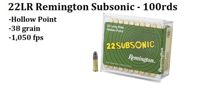 Remington Subsonic ammunition is specifically loaded to stay under the speed of sound of 1100 feet per second. This reduces noise and is preferred for shooting through a suppressor when This ammunition is excellent for small game and varmint control.