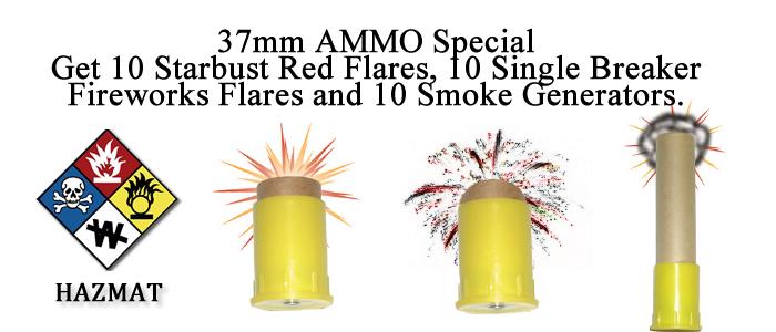 Get 10 Starburst Red Flares, 10 Single Breaker Fireworks Flares and 10 Smoke Generators. For one great low price...buy more and save more!!