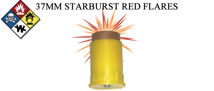 Whether for boating or hunting emergencies, re-enactments, highway breakdowns, or just keeping those pesky critters out of the corn field, our Starburst Flares, Smoke Generators and Single Breaker Flares can come in very handy. The Starburst gives off a long lasting, maximum intensity red light. These projectiles will fire approximately 100-150 ft into the air before burst. These should only be used in an open foliage area due to extreme fire hazard! These are the only recommended types of 37mm ammo to be used with the launchers in this catalog.