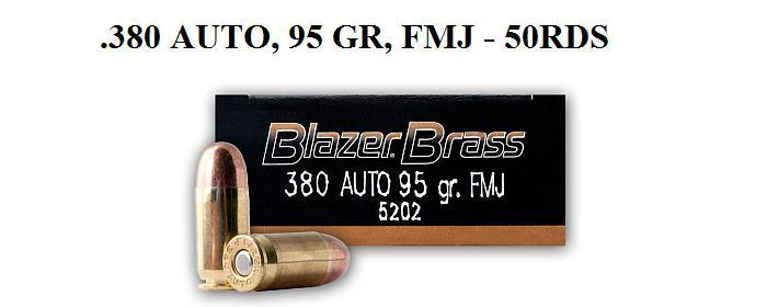 380 Auto, 95 Grain, FMJ, CCI Blazer