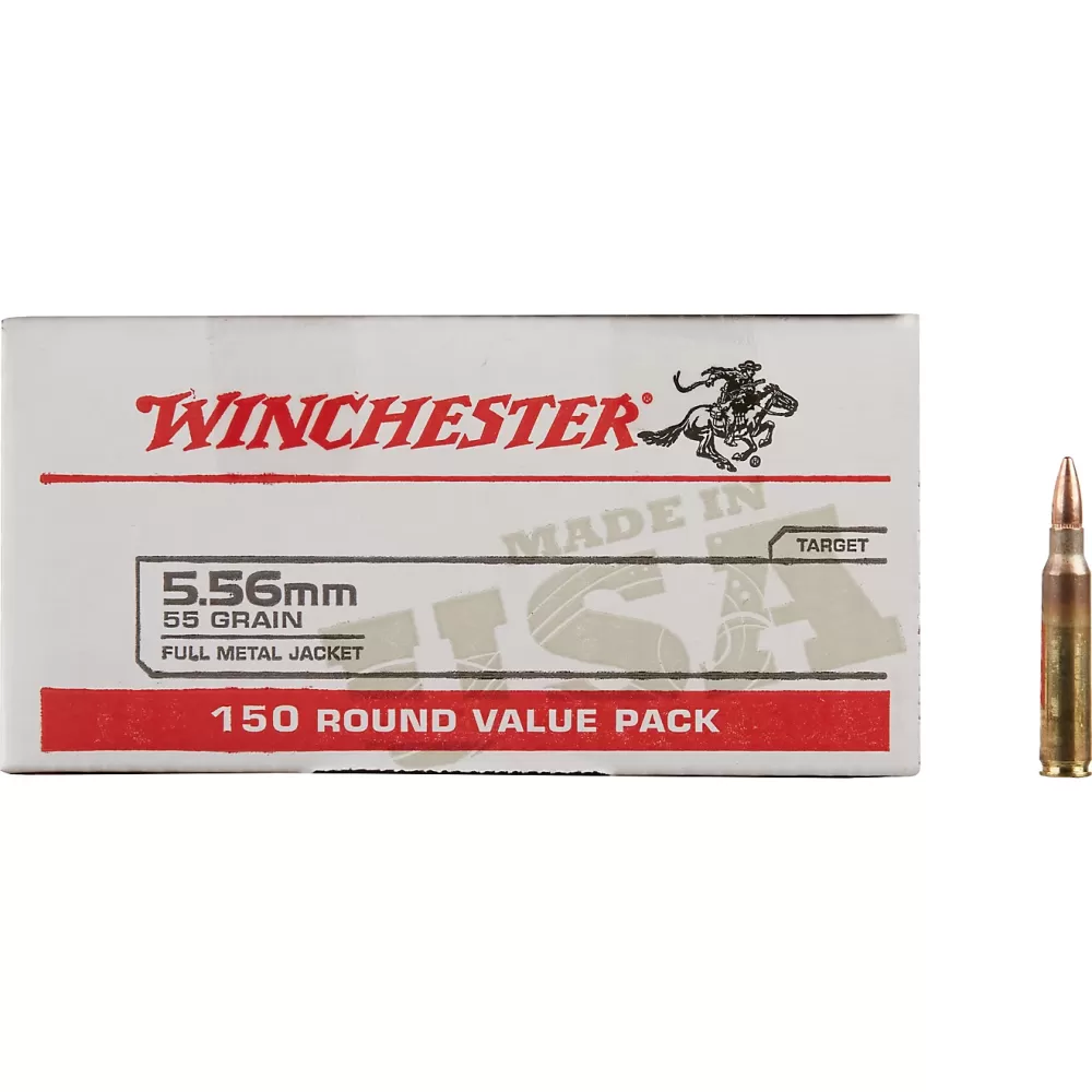 WINCHESTER 55GR. FMJ 150 ROUND VALUE PACK BRASS 5.56 BOX OF 150 ROUNDS