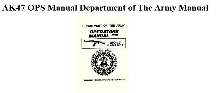 AK47 OPS Manual Department of The Army Operator and Organizational Maintenance Manual including repair parts and special tools lists. Fully illustrated for easy repair of the AK47 Assault Rifle (39 pages)