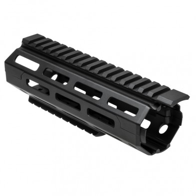 This Handguard for the AR15/M4 rifle is a drop in carbine hand guard and fits mil-spec carbine length gas systems and will fit Ruger AR-556. This M-LOK handguard Is black anodized aluminum construction. Easy Drop-In install no special gunsmithing involved fits into Delta Ring and front Handguard Cap. Remove factory handguard and drop in the M-LOK®handguard and use supplied screws to secure M-LOK handguard in place. Solid fit top rail is at receiver height and extends over Delta ring to the edge of the receiver. Designed to fit AR15/M4s with: MIL-SPEC Barrel Nut, Delta Ring, and front Handguard Cap.