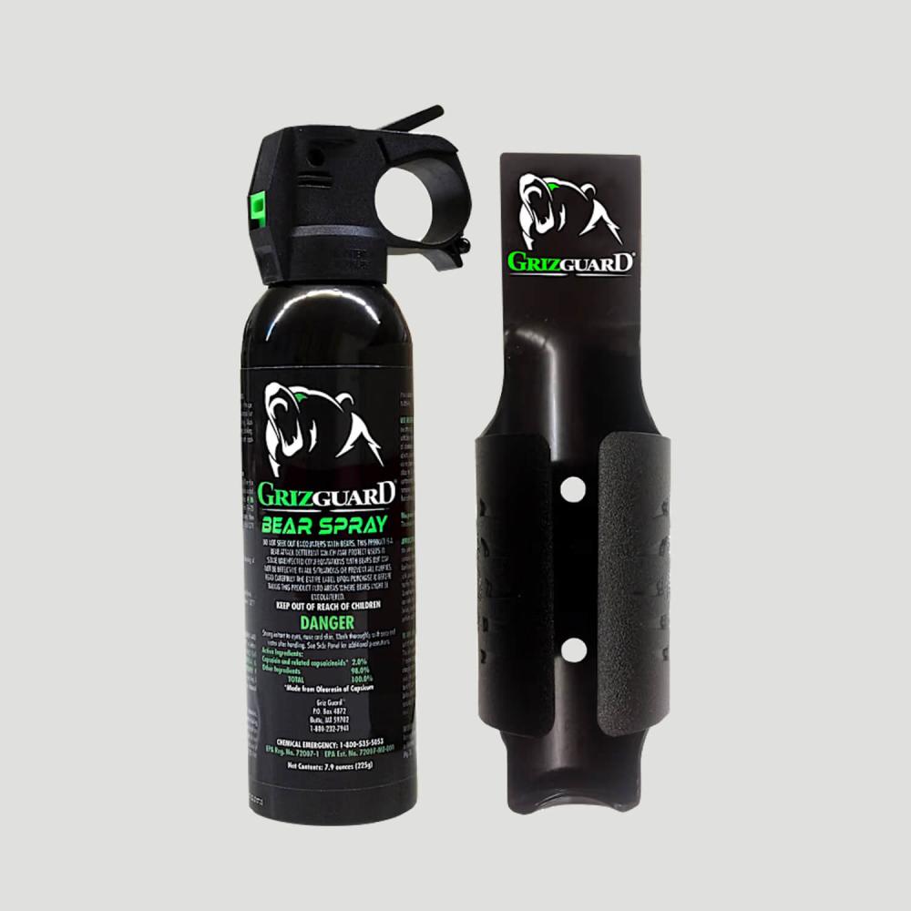 You're in bear country now, so be prepared with Griz Guard Bear Spray. It uses the hottest red pepper formula available on the market. The capsaicin formula instantly affects a bear's eyes, nose, and lung tissue to stop their advance and give you time to get away. The non-lethal formula is EPA registered, and tested to 0°F. Blasts a visible fog up to 30' away. Includes a hip holster for easy draw upon a surprised bear encounter.