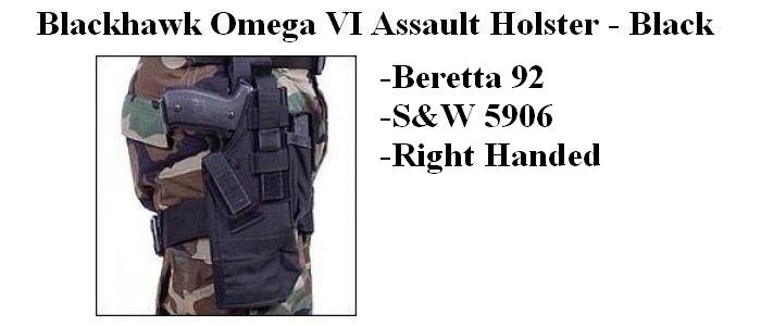 BlackHawk Omega VI Assault Holster, Beretta 92F, SandW 5906, Right Handed, Black