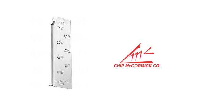 Chip McCormick M1911 Style .45 ACP 8 rd silver. This is the same design CMC supplies to America's top 1911 manufacturers for use as factory standard in their pistols. Tolerances are 50% tighter than military specification mags and has the same length as stock magazines. These heavy duty mags deliver extra capacity and improved performance.