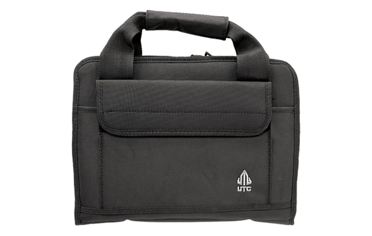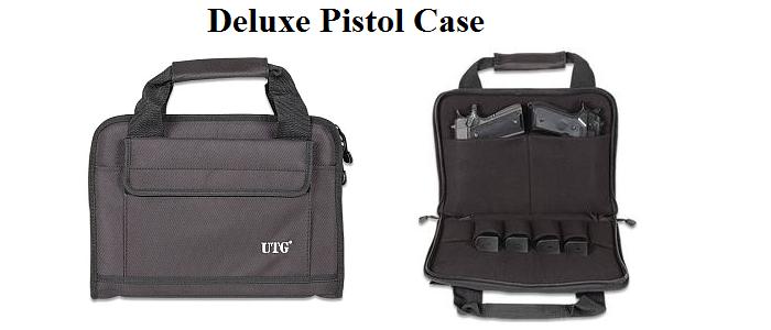 This Deluxe Pistol Case is Designed to securely hold two handguns and six magazines in individual pockets with double thick padding and zippered closure; heavy web handle, and 6x10" exterior pocket with hook & loop fastener to close, large 14x10" case, reinforced at all stress points.