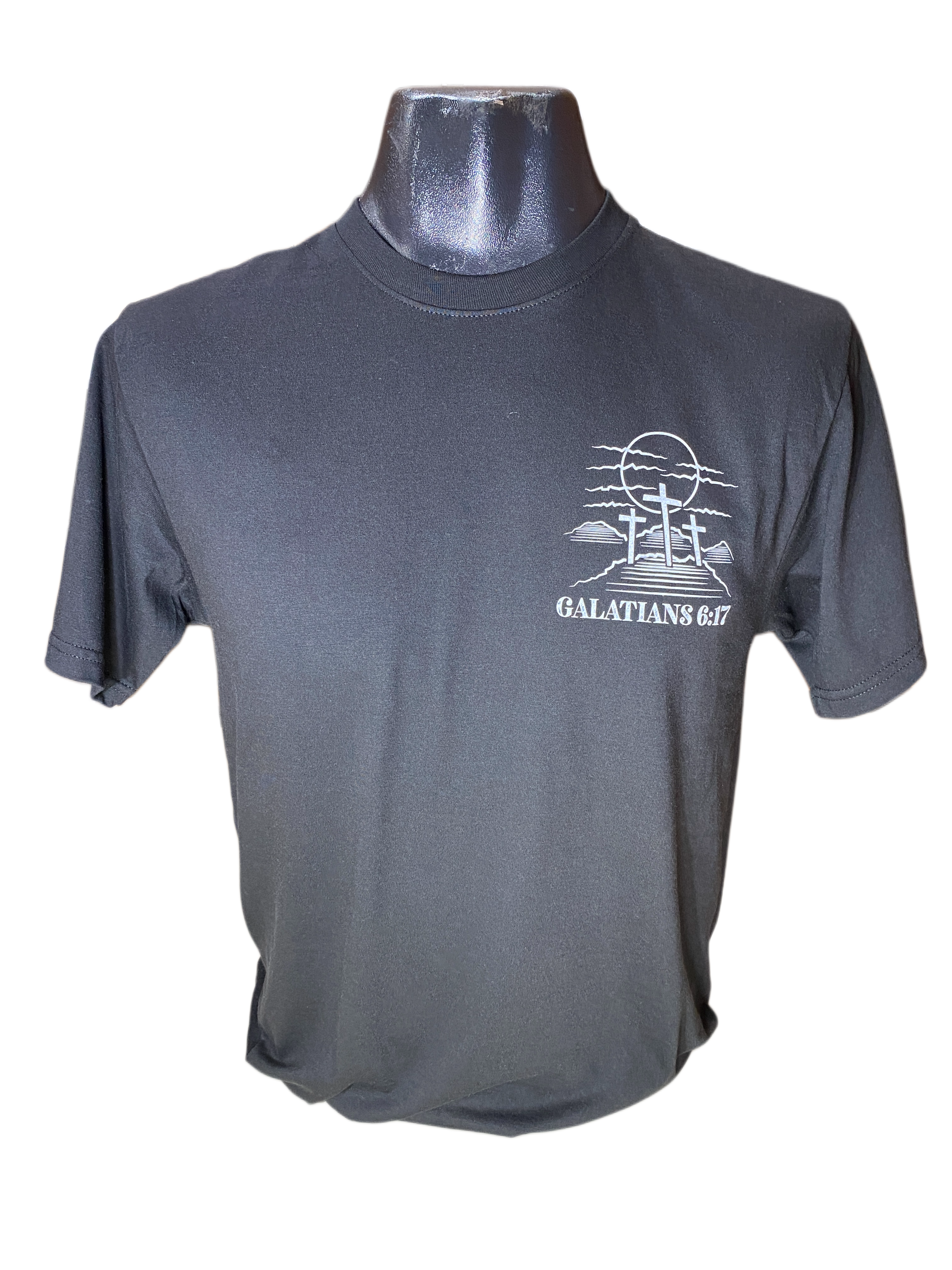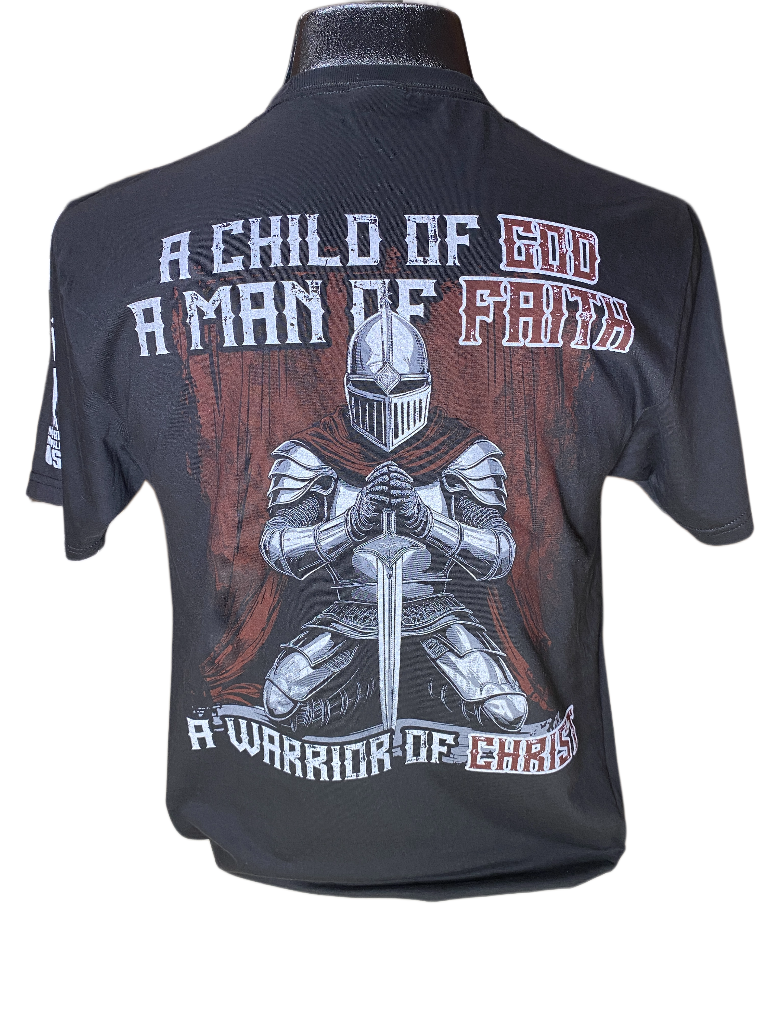 Galatians 6:17. A Child of God. A Man of Faith. A Warrior of Christ. Comes sized Small-3XL, Color: Black