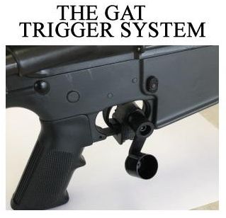 There's something NEW in town and it is probably the best trigger enhancement system out today! The NEW GAT Trigger System! Right out of the box - crank to achieve full auto (turn crank one revolution per four shots). Full auto rate from Any shooting position. The GAT Trigger System is BATF legal and built to last a lifetime. it is definitely the most accurate, reliable and most advanced trigger enhancement ever devised. This Gatling style trigger is one of the best Rapid fire triggers on the market. (For AK-47, AR-15, 10/22, SKS, HK-91 & 93 & 94, Mac-10, Mac-11, Mac-9, 30 caliber carbine, M-1A, Mini-14, MAK-90, FMC, M-1 Garand & most other guns.)