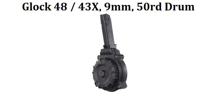 This 50-rd drum is for the Glock 43X and Glock 48 firearms chambered in 9mm. The magazine body is constructed of a proprietary DuPont Zytel based polymer to ensure a long service life. All components proudly made in the U.S.A.