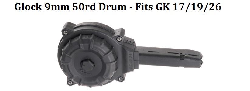 Glock 9mm 50rd Drum, Fits Glock 17/19/26