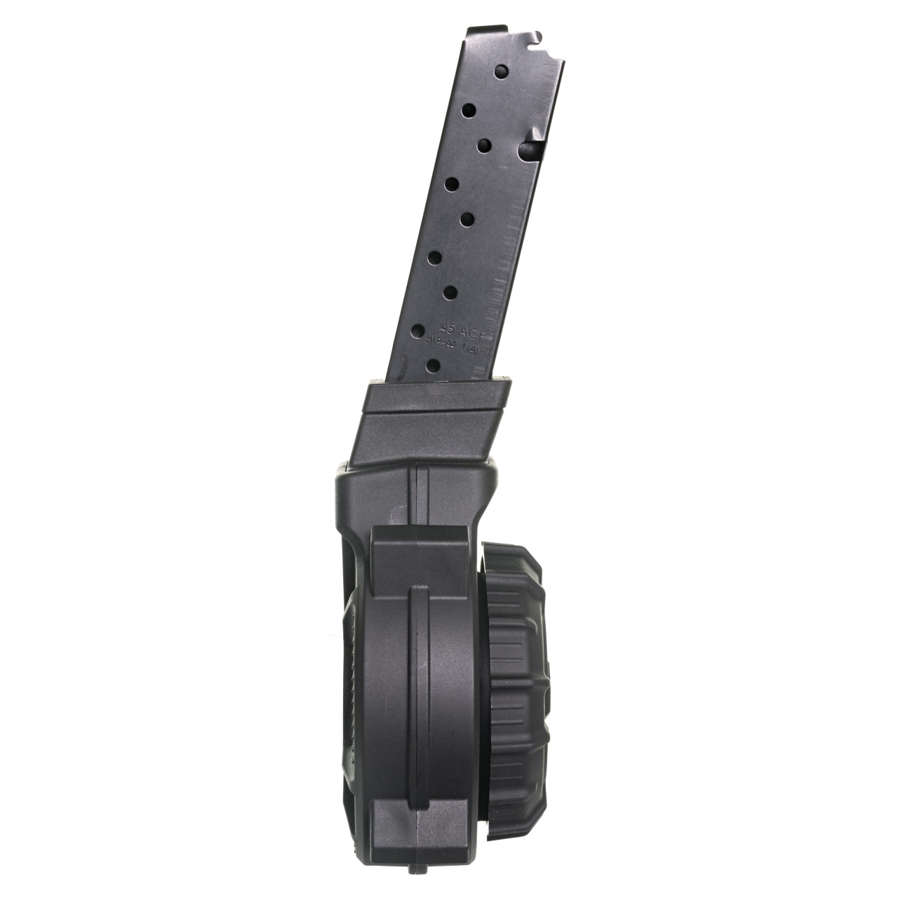This 40-rd drum is for the Hi Point firearms chambered in .45 ACP. The magazine body is constructed of a proprietary DuPont Zytel based polymer to ensure a long service life. All components proudly made in the U.S.A.