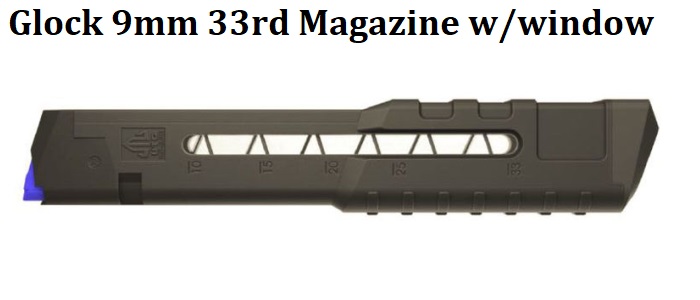 High Capacity Glock 9MM, 33rd Magazine w/Window