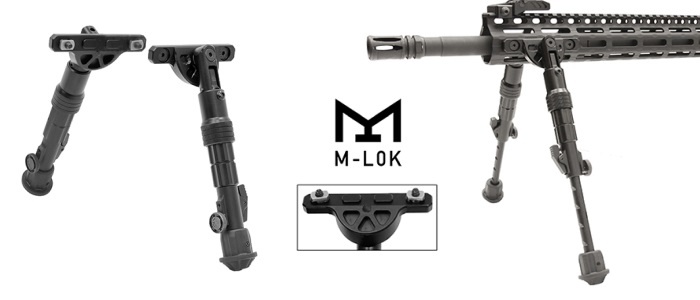 This Bipod Directly Attaches to M-LOK® Handguards at the 3 and 9 O'clock Positions. It requires the length of 2 M-LOK Slots per leg. It has an Ergonomic Spring Loaded Slide Locking Ring for Quick and Effortless Bipod Deployment. The legs are bi-directional with 5 locking positions. It can also be locked in between positions with the thumb wheel. It is made of Lightweight Aircraft Grade Aluminum and Finished in Anodized Matte Black. It has Textured Nonslip Ruber foot pads to use in any condition or terrain.