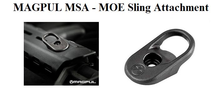 The MSA™ (MOE® Sling Attachment) attaches directly to the MOE Hand Guard, providing a forward sling attachment point for the Magpul MS2™, MS3™ and other clip-in sling systems. Like the RSA™, the MSA is made of steel and is nitrocarburized for wear and corrosion resistance.