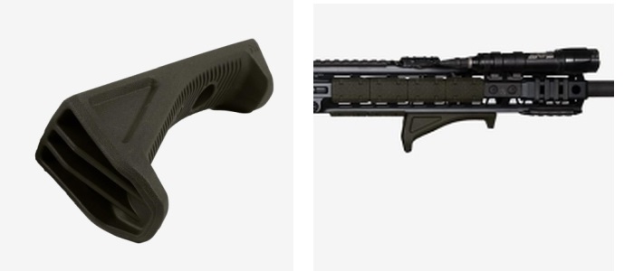 Allowing for a wider range of mounting location options, the M-LOK AFG is ¾" shorter than the AFG-2, while maintaining a similar gripping surface area. Even though the M-LOK AFG is more compact than its predecessors, it takes into account natural body mechanics to provide a comfortable and stable user interface that reduces fatigue and allows for more precise weapon control. By positioning the shooter's hand high on the centerline of the bore, unlike conventional vertical fore grips, the M-LOK AFG helps mitigate recoil and control the weapon to facilitate faster, more accurate follow-up shots.