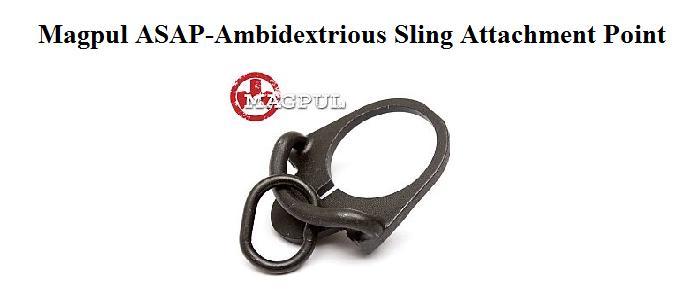 The ASAP Ambidextrous Sling Attachment Point allows a range of motion greater than 180 degrees, enabling true ambidextrous weapon manipulation for both left and right handed shooters. The ASAP replaces the standard AR15/M16 carbine stock receiver end plate, providing a tactical advantage by minimizing snagging and facilitating easy transition to and from weapon and reaction side shoulders. The ASAP works with Single-Point type slings with snap hook style attachments such as the Magpul MS2 Sling.