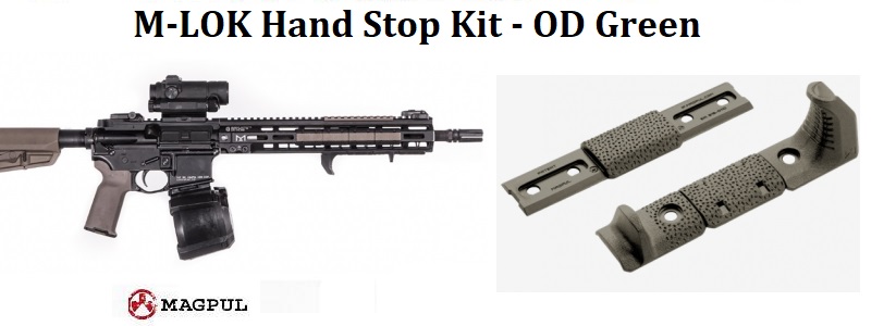 The kit includes one M-LOK Hand Stop, one M-LOK Index Panel, and one M-LOK Rail Cover Type 2 for the individual user to configure their kit as they desire. Also included in this kit is an adapter for use with Magpul M-LOK equipped polymer Hand Guards / Forends as well as other wider profile aluminum hand guards.