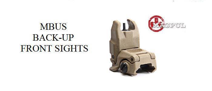 The MBUS (Magpul Back-Up Sight) is a low-cost, color injection molded, folding back-up sight. The MBUS Front Sight is adjustable for elevation and fits all mil-spec 1913 Picatinny rail equipped weapons, but is specifically tailored to the AR15/M16/M4 platform. NOTE: Cannot be mounted to a railed gas block due to excess heat issues. Front MBUS must be mounted to a railed fore end on the same plane as the receiver rail. Made in U.S.A. Flat Dark Earth (Tan) in color.