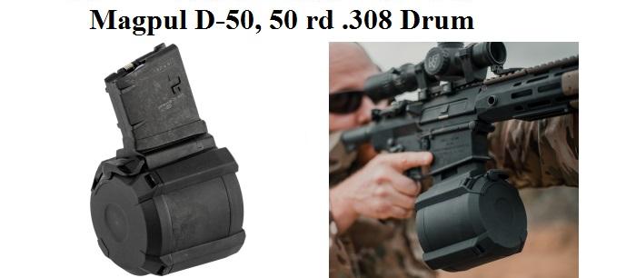 At approximately 1.7 lbs empty, and 4.5 lbs loaded, the Magpul D-50 is one of the lightest 50-round 7.62x51/.308 drums available, and it's priced well below the current competition. The D-50’s unique drum configuration gives it roughly the same overall height profile as a standard 25-round PMAG, making storage easy and shooting from various positions--including prone--no different than with smaller capacity magazines.