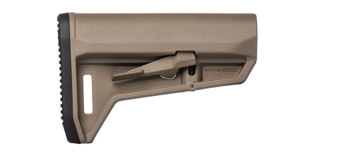 Features a short and slim profile, a smaller rubber butt-pad with rolled toe for easy shouldering and sure grip, and a 1.25” footman’s loop with the ability to accept an optional M-LOK QD Sling Mount for push-button style QD sling swivels. A new, unique, ambidextrous release latch minimizes rattle on the receiver extension without requiring additional locks, levers, or springs*.