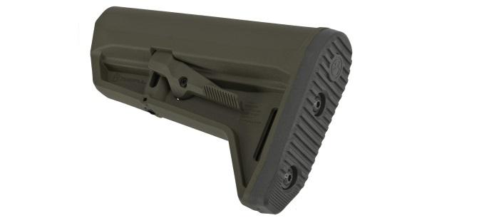 Features a short and slim profile, a smaller rubber butt-pad with rolled toe for easy shouldering and sure grip, and a 1.25” footman’s loop with the ability to accept an optional M-LOK QD Sling Mount for push-button style QD sling swivels. A new, unique, ambidextrous release latch minimizes rattle on the receiver extension without requiring additional locks, levers, or springs*.