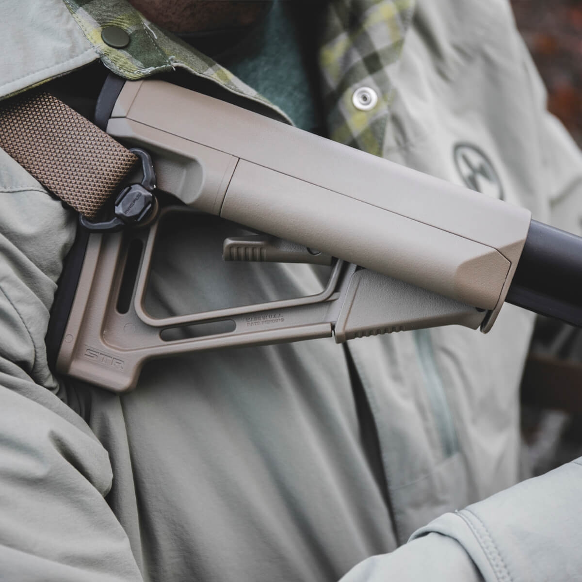 The STR incorporates two integral sling loops, a reversible push-button QD sling mount, and a replaceable 0.30" rubber butt-pad which provides positive shoulder purchase to prevent slippage even with body armor or modular gear.