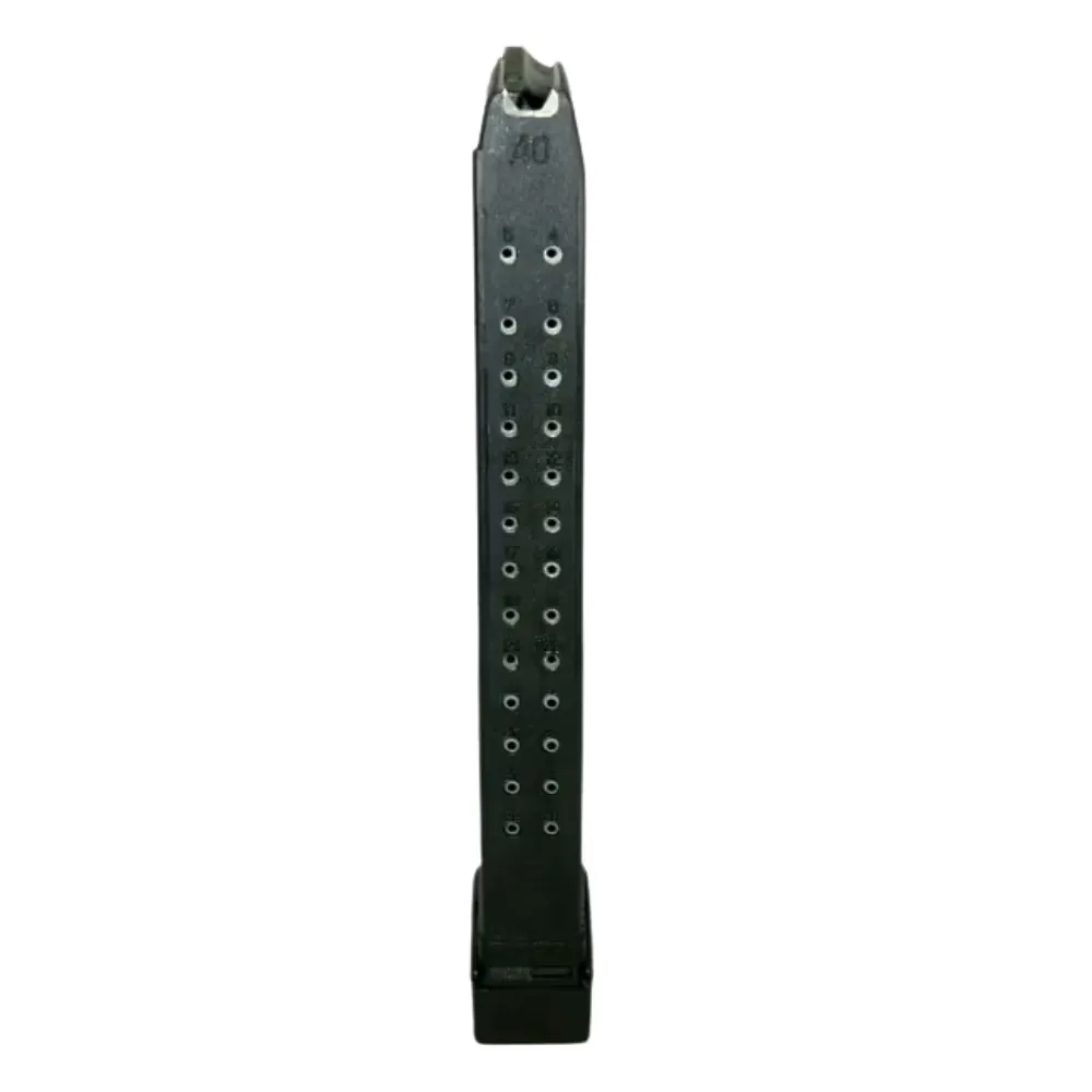 The .40 S&W magazine fit's the following glocks: G22/23/27/35 and also fit's the Glock .357 models 31/32/33 and Kel Tec Sub 2000. Capacity is 31 rounds.
