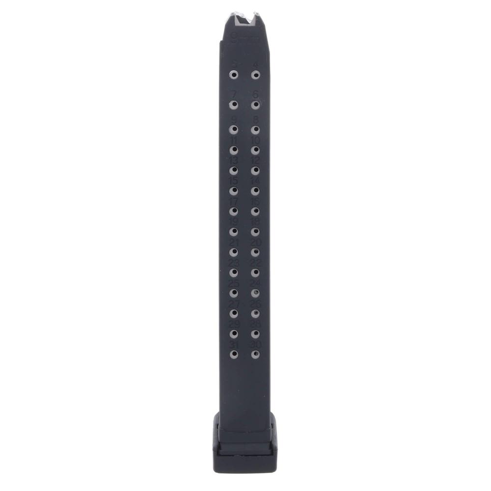 Give your Glock a major round count boost with these jumbo capacity magazines! Built to run, these feature a durable polymer shell and rugged steel liner for smooth, reliable performance. They have the ambi mag catch notch cut in the front, so they will work with all generations.
