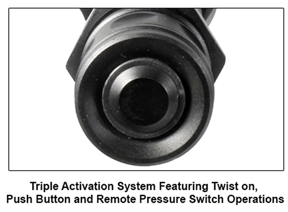 •Dual-function Flashlight End Cap with Push-button Momentary On/Off or Constant Twist On/Off Activation