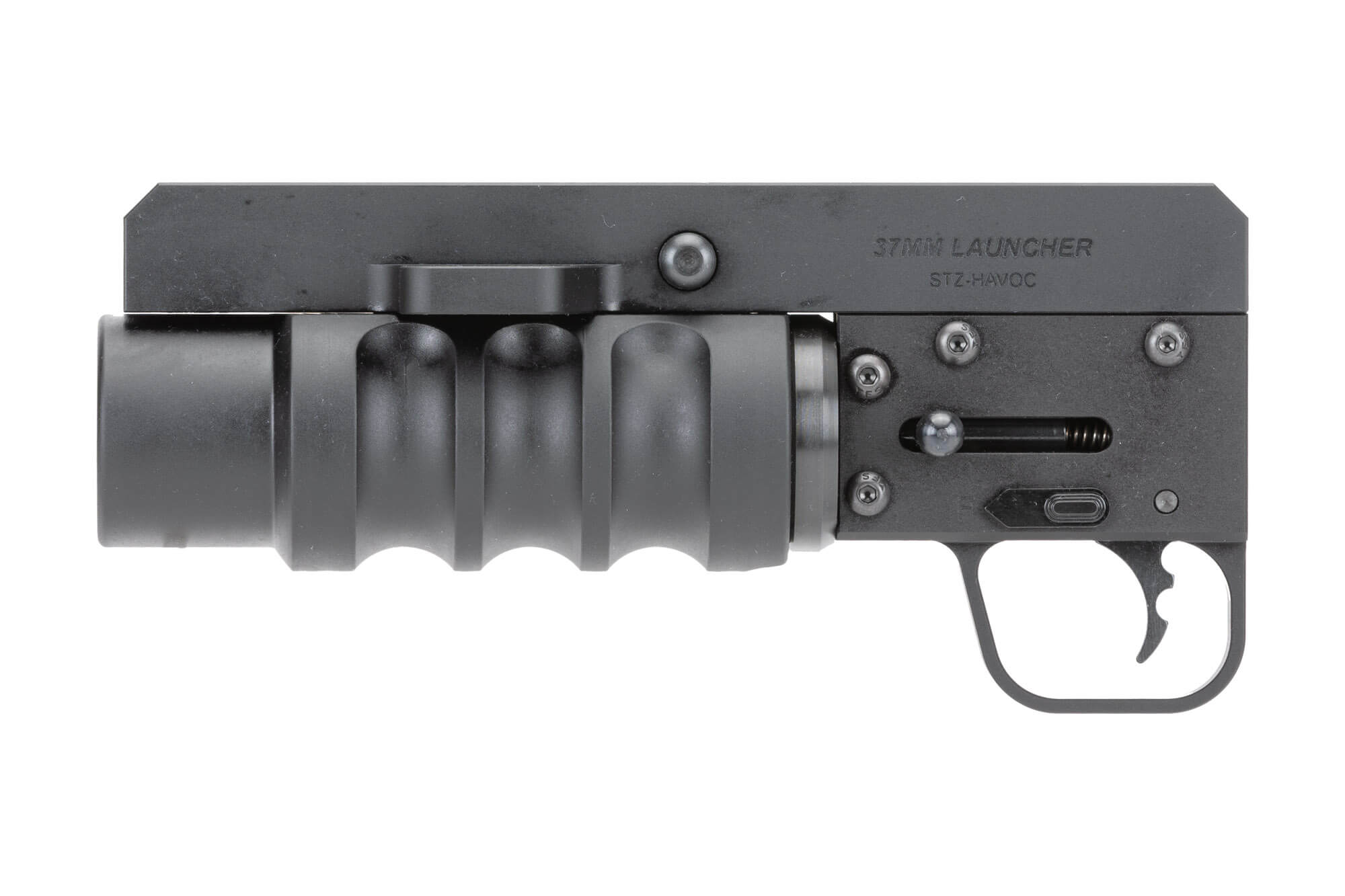 Additional components are built from 1018 cold rolled steel and plated with a Mil-spec black oxide finish. The proprietary STZ push button cylindrical breech lock design is 3 times stronger than existing lever lock systems. The Havoc is designed to mount on any Mil-Spec rail system. Installation simply requires sliding the launcher onto the bottom rail of the handguard and tightening two set screws which are included.